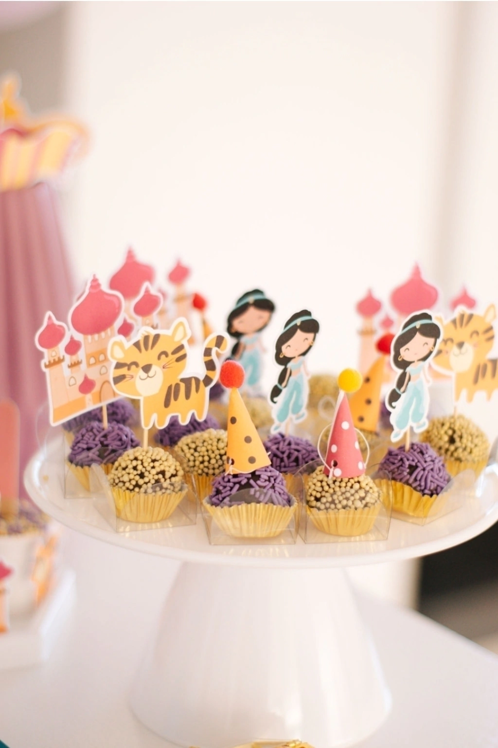 Mini Toppers temáticos IMPRESSO no tema da festa com modelo e cores personalizadas usando ilustrações disponíveis em nossos temas prontos (Veja aqui)