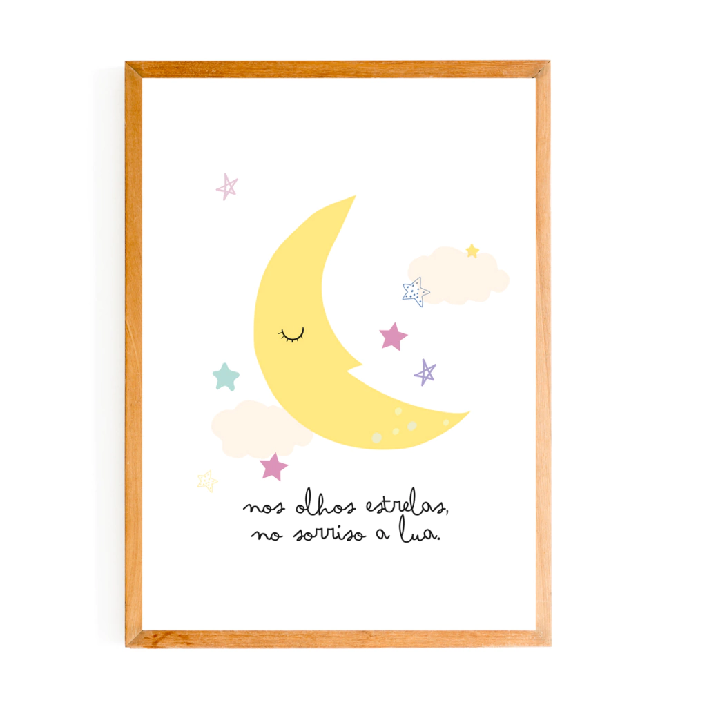 Nossos quadros estão disponíveis em formato impresso e digital, ambos em diversos tamanhos. Para o tamanho a4 dispomos de molduras branca e pinus. Pensando na segurança da sua criança, a moldura não possue vidro, utilizamos uma lâmina de acetato para proteger a ilustração e garantir maior durabilidade.